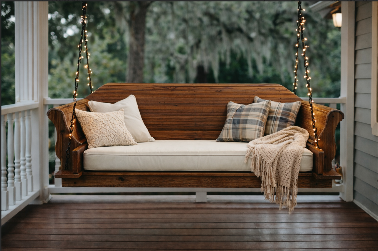 The Blue Ridge Estate line is designed for elevated outdoor living. Defined by structured silhouettes and tailored detailing, these pieces bring a sense of formality and balance to porches and terraces while remaining deeply comfortable and inviting.
